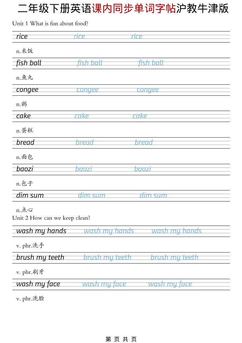 二年级下英语课内同步单词字帖《沪教牛津版》