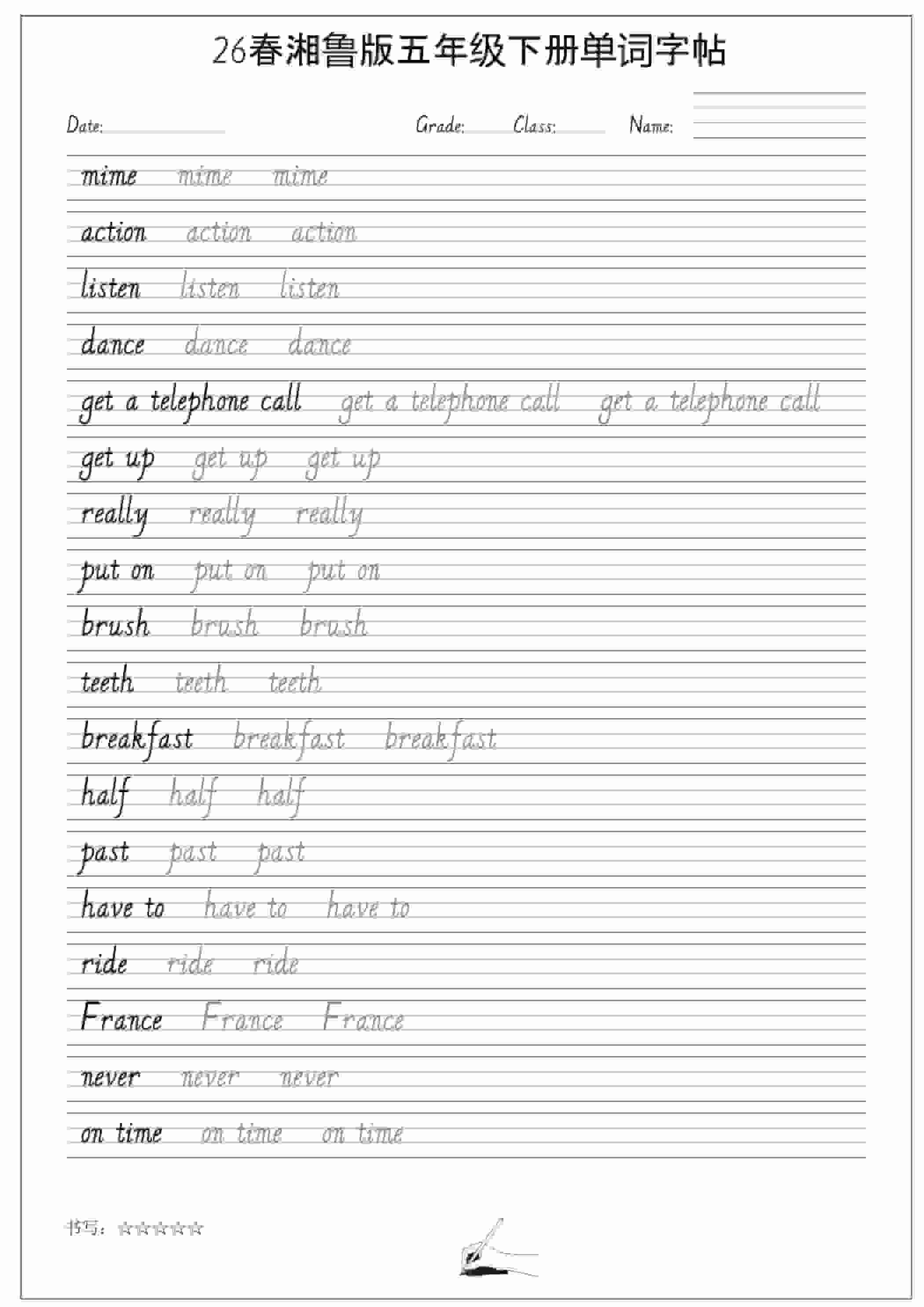 首页 > 全部 > 五年级 > 五年级下英语26春单词字帖《湘鲁版》