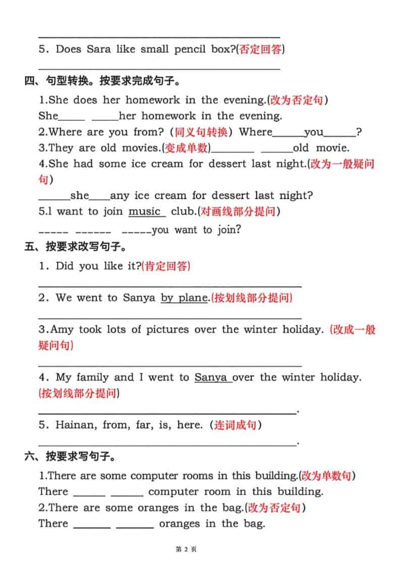 首页 > 全部 > 六年级 > 六年级下英语句型转换80道《人教版PEP》