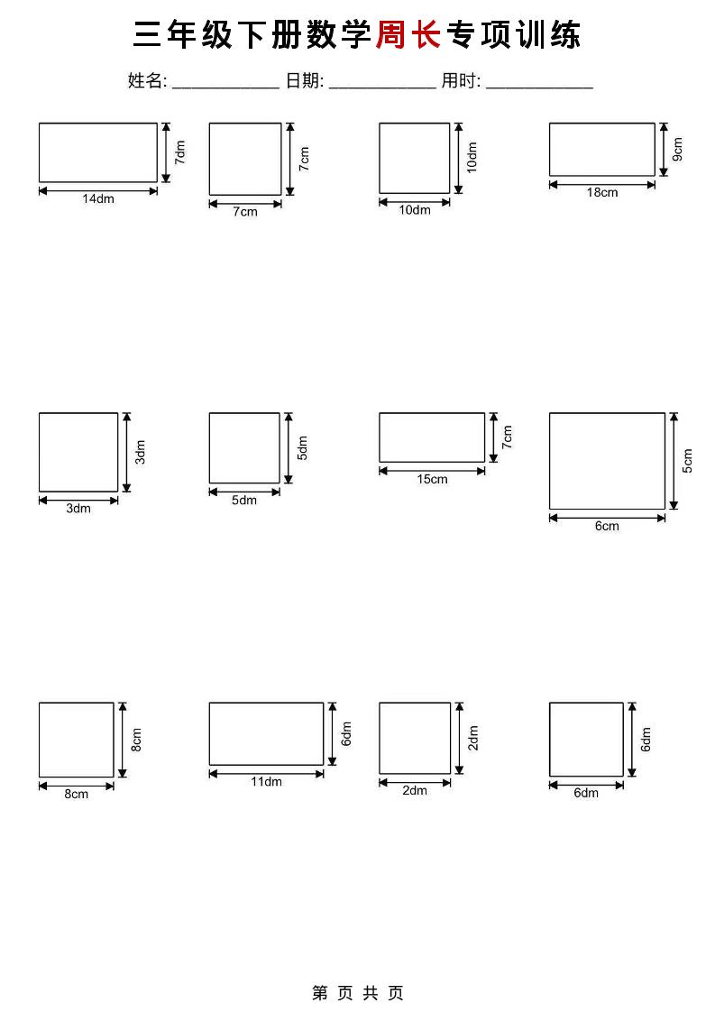 首页 > 全部 > 三年级 > 三年级下数学周长专项训练