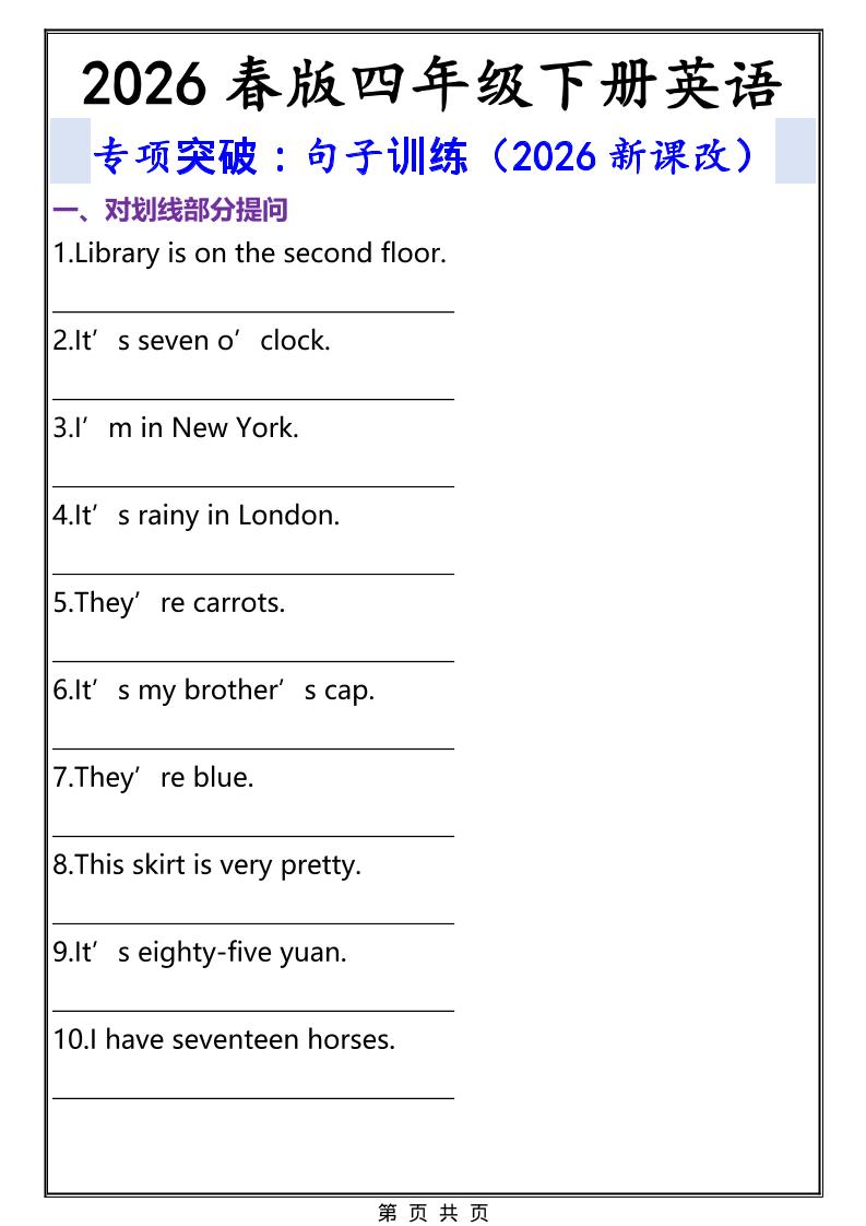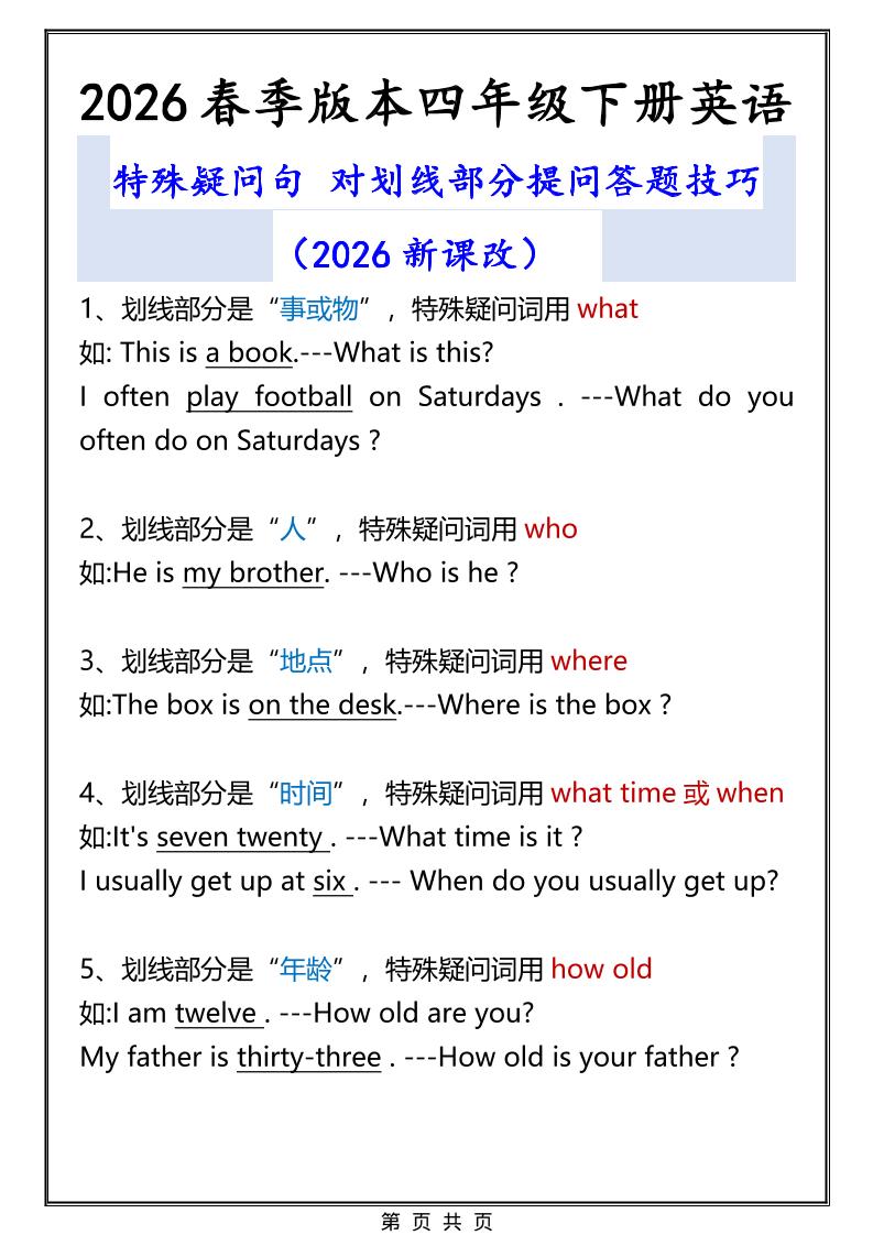 2026春新版四年级下英语特殊疑问句答题技巧