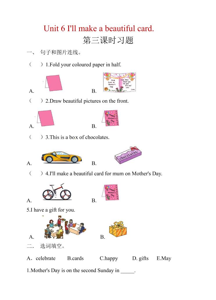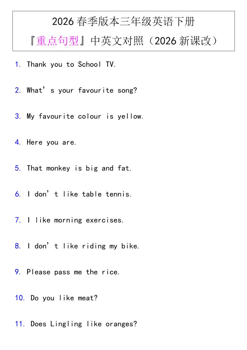 四年级下英语英汉互译练习《人教版PEP》
